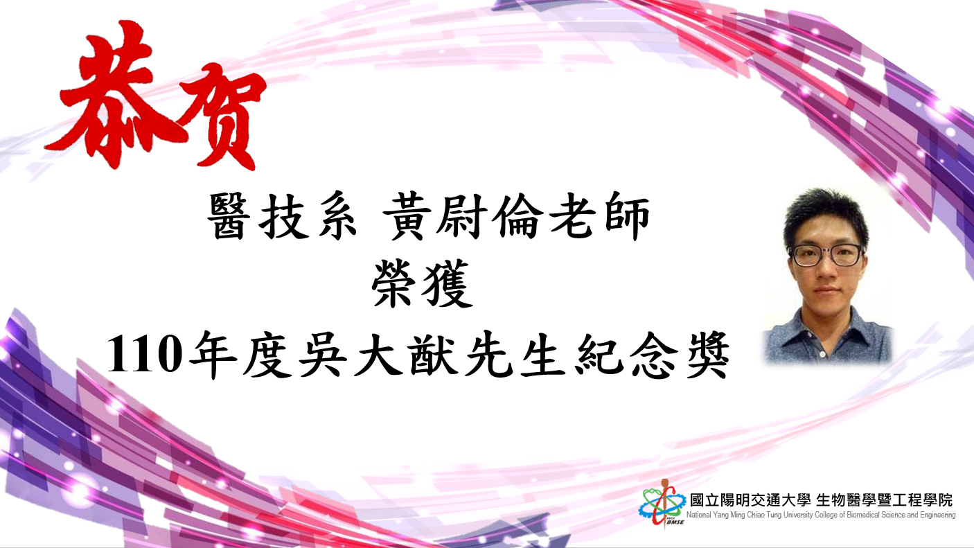 Congratulations to Professor Huang Weilun of the Department of Medical Technology for winning the 110th Mr. Wu Dayou Memorial Award