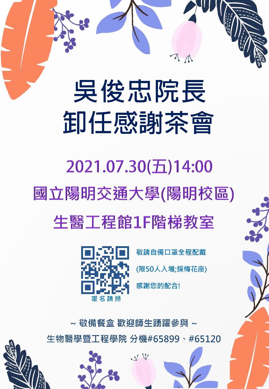吳俊忠院長卸任感謝茶會資訊,歡迎蒞臨參與!