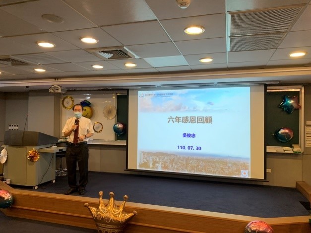 吳俊忠院長擔任生物醫學暨工程學院六年職務,任期自2015.08至2021.07,卸任之際,於疫情之下,於七月三十日舉辦卸任感恩茶會,當天學院參與教職員約四十名,依據防疫要點採梅花座入座,場面溫馨感人。