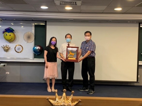 最後,為表達吳俊忠院長對學院的辛勞與付出,由新任林峻立院長準備唐三彩駿馬代表學院全體教職同仁作為謝禮,並由楊雅如副院長及吳育德副院長代為致贈,於活動結束後與在座所有嘉賓一同於生醫工程館大廳合影留念。